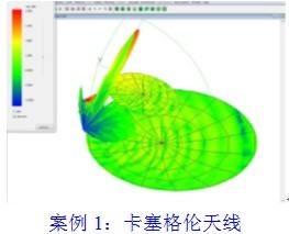 【案例2】天线罩计算 天线罩下方有一副单体反射面天线,工作频率为20GHz,使用快速多级方法与体积分方程法计算天线在天线罩影响下的辐射方向性图,得到加天线罩和不加天线罩的辐射方向性图,如图所示。