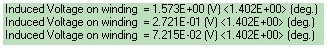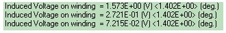 计算完成之后,得到左侧第一感应线圈、第二感应线圈和第三感应线圈上的 感应电压依次分别是: