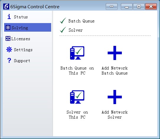 1. 界面方面的改变 Ø 新增6Sigma Control Center模块 该模块将软件的License,CFD Solver,Batch Queue等服务整合在一个窗口当中,相当以前这些模块都有单独的设置窗口更加简洁、方便。