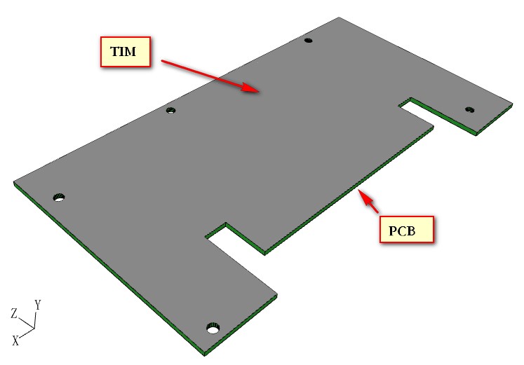 Ø 新增建立异形TIM功能 TIM带来的热阻对计算的结果有比较大的影响,在新版本中,异形PCB和异形器件的下一级可以直接建立继承其外形的TIM,带来更精确、更方便的建模体验。
