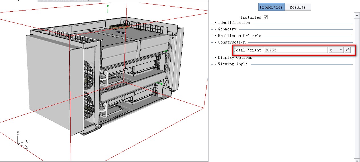 Ø 新增重量评估功能 新版本软件可根据零件或组件的几何外形和密度计算出单个器件(如散热器)或整机的重量。以便于设计人员清楚地了解设备的重量是否超标,做出改进。
