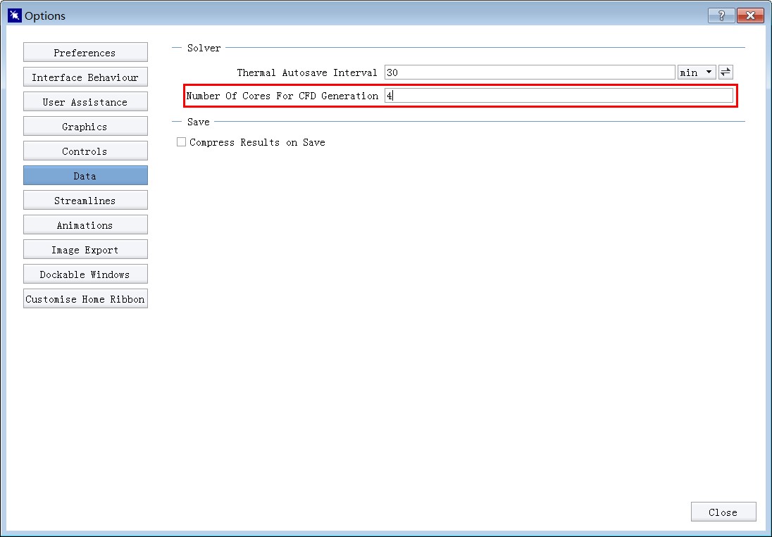 4. 求解器方面的改进 Ø 生成网格、模型准备、计算辐射角系数都将支持多核加速 以前的版本只有主求解过程可以使用多核加速计算功能,但对复杂模型来说,生成网格、模型准备、角系数计算有时会需要一个比较长的时间,新版本中针对这些过程开发了多核计算功能,可以大大加速整个求解的过程。在Option>data中设定这些过程用到的核数即可,计算机核数越多,节省的时间也越多。